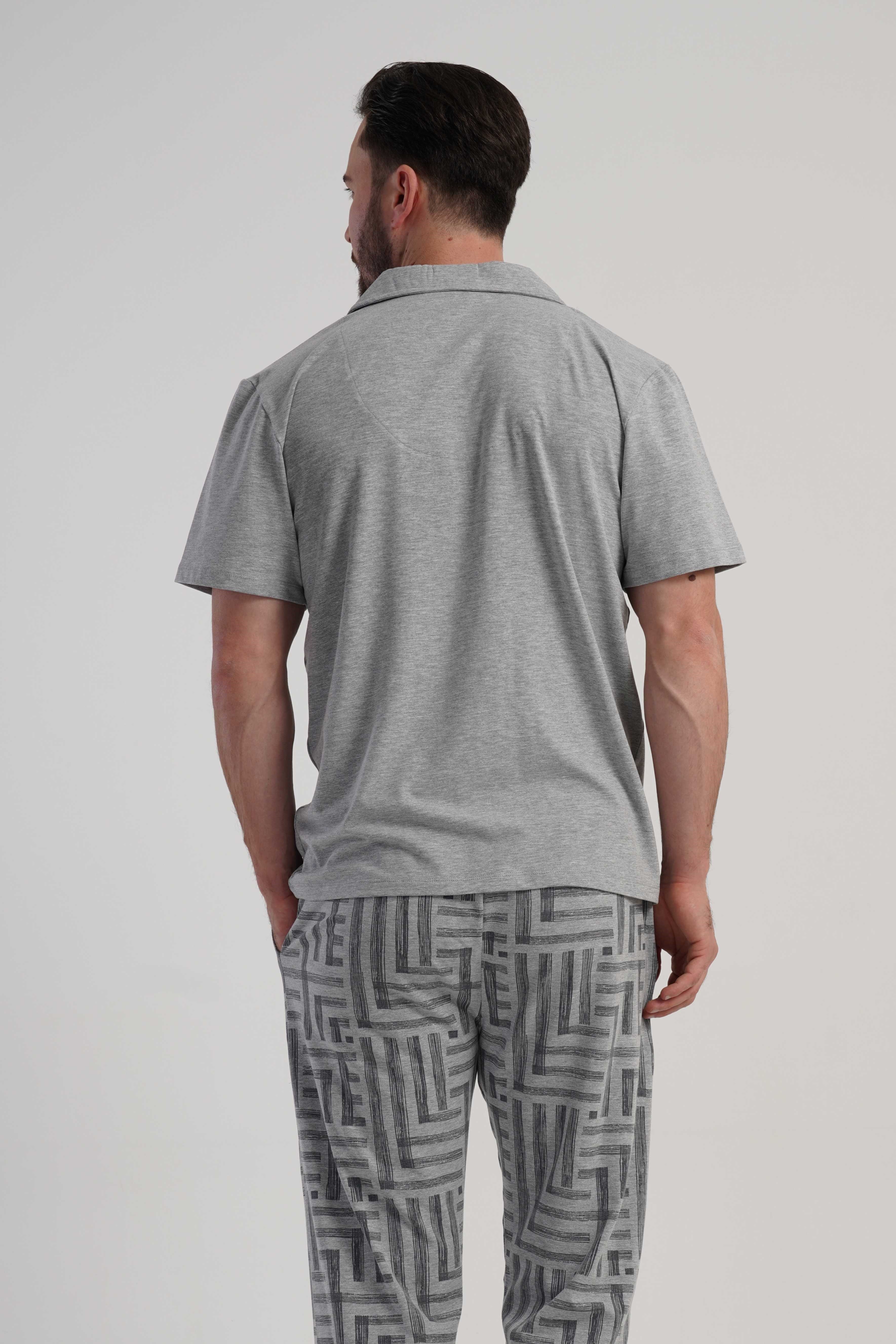 Erkek Gri Lyc Suprem Gömlek Yaka Düğmeli Kısa Kol Pijama Üstü (OBJE 512162_GRİ)