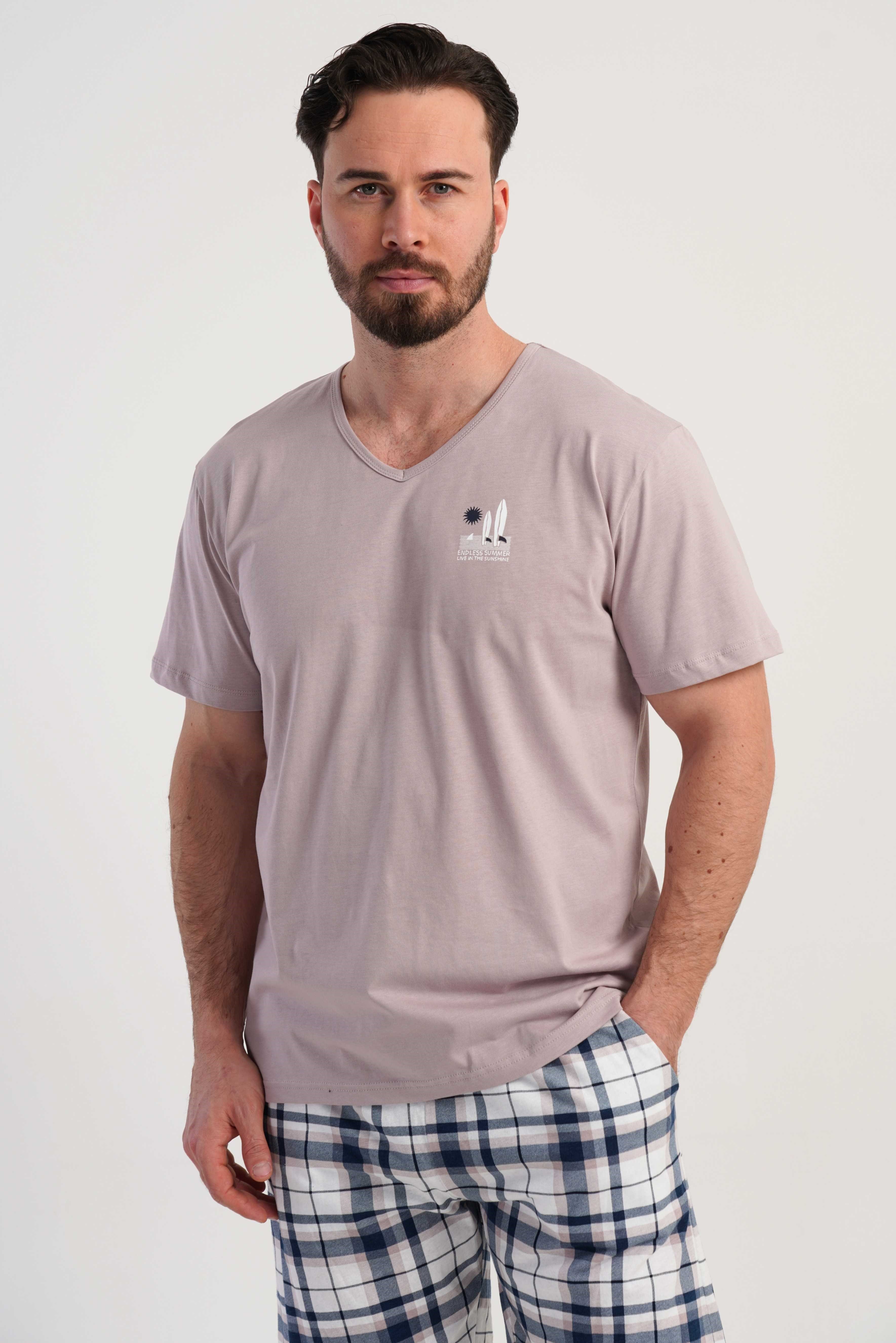 Erkek Açık Kahve Suprem V Yaka Kısa Kol Pijama Üstü (OBJE 512129_AÇIK KAHVE)