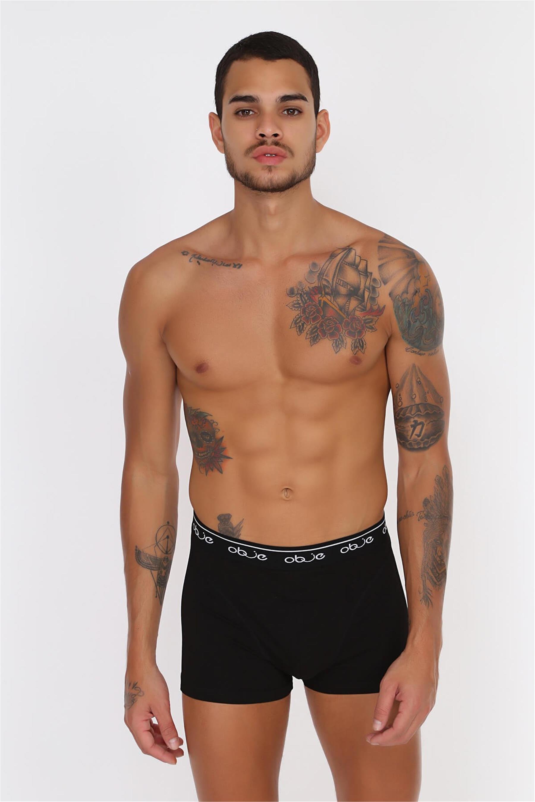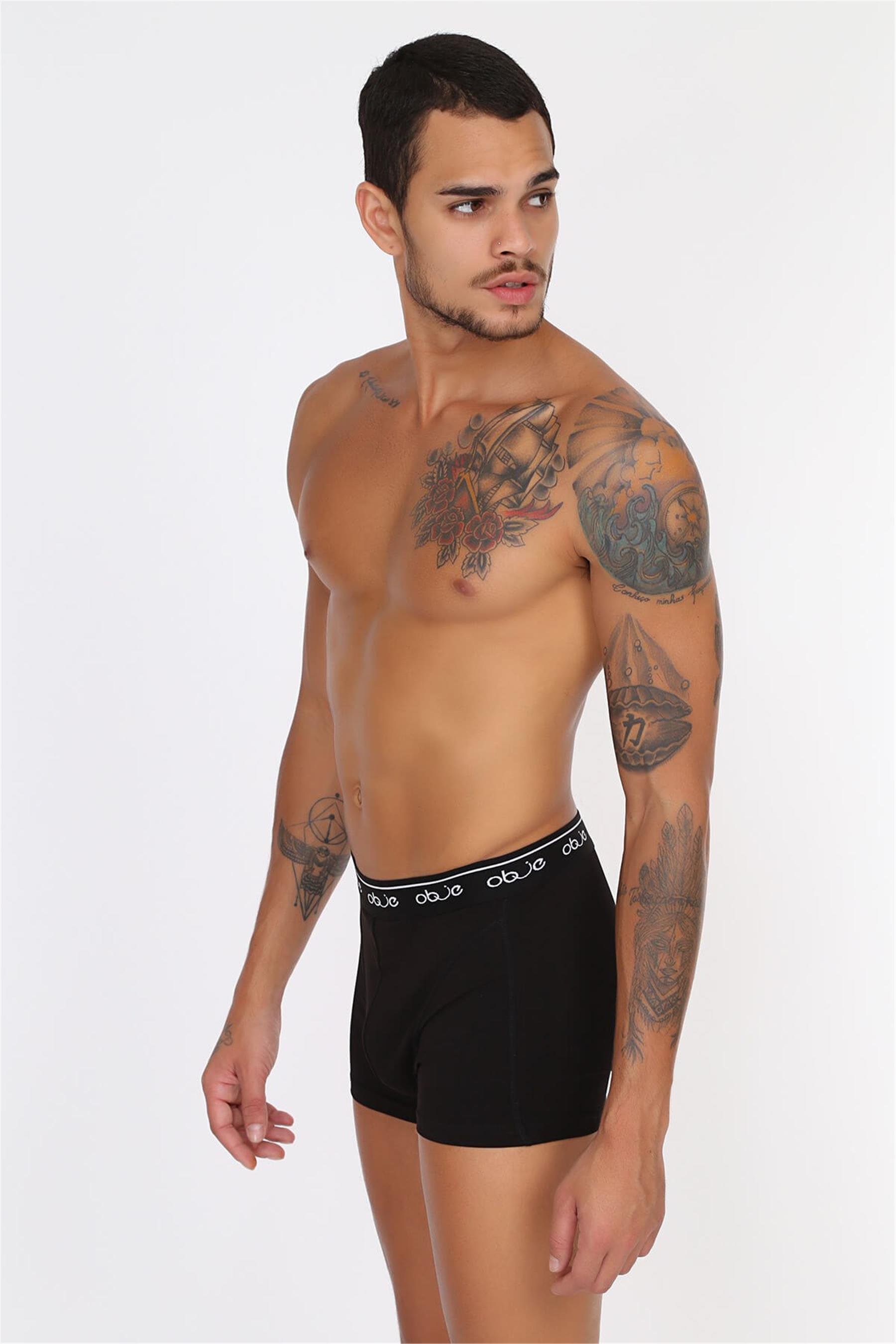 Erkek Siyah Dıştan Lastikli Boxer (OBJE 00027_SİYAH)