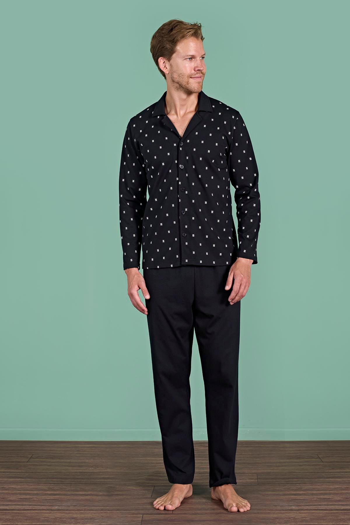 Erkek Siyah Önden Düğmeli Pijama Takımı (OBJE 1928_SİYAH)