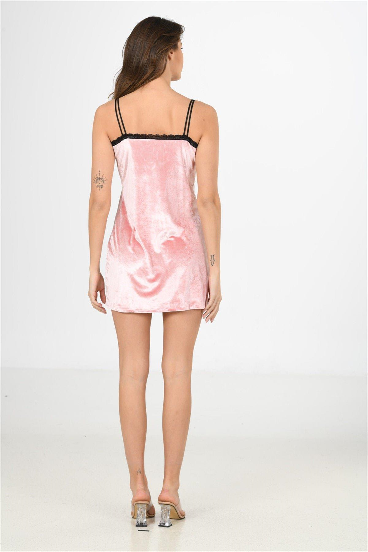 Kadife İp Askılı Elbise (OBJE 15072_PEMBE)