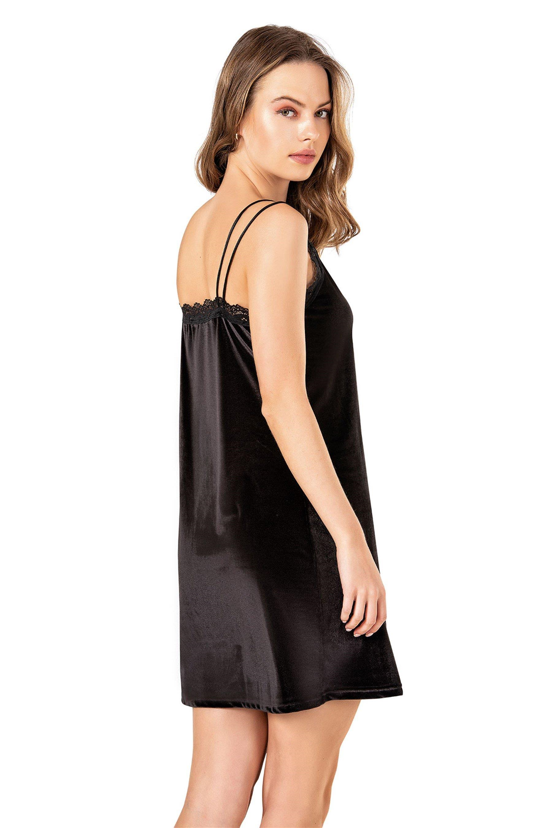 Kadife İp Askılı Elbise (OBJE 15072_SİYAH)