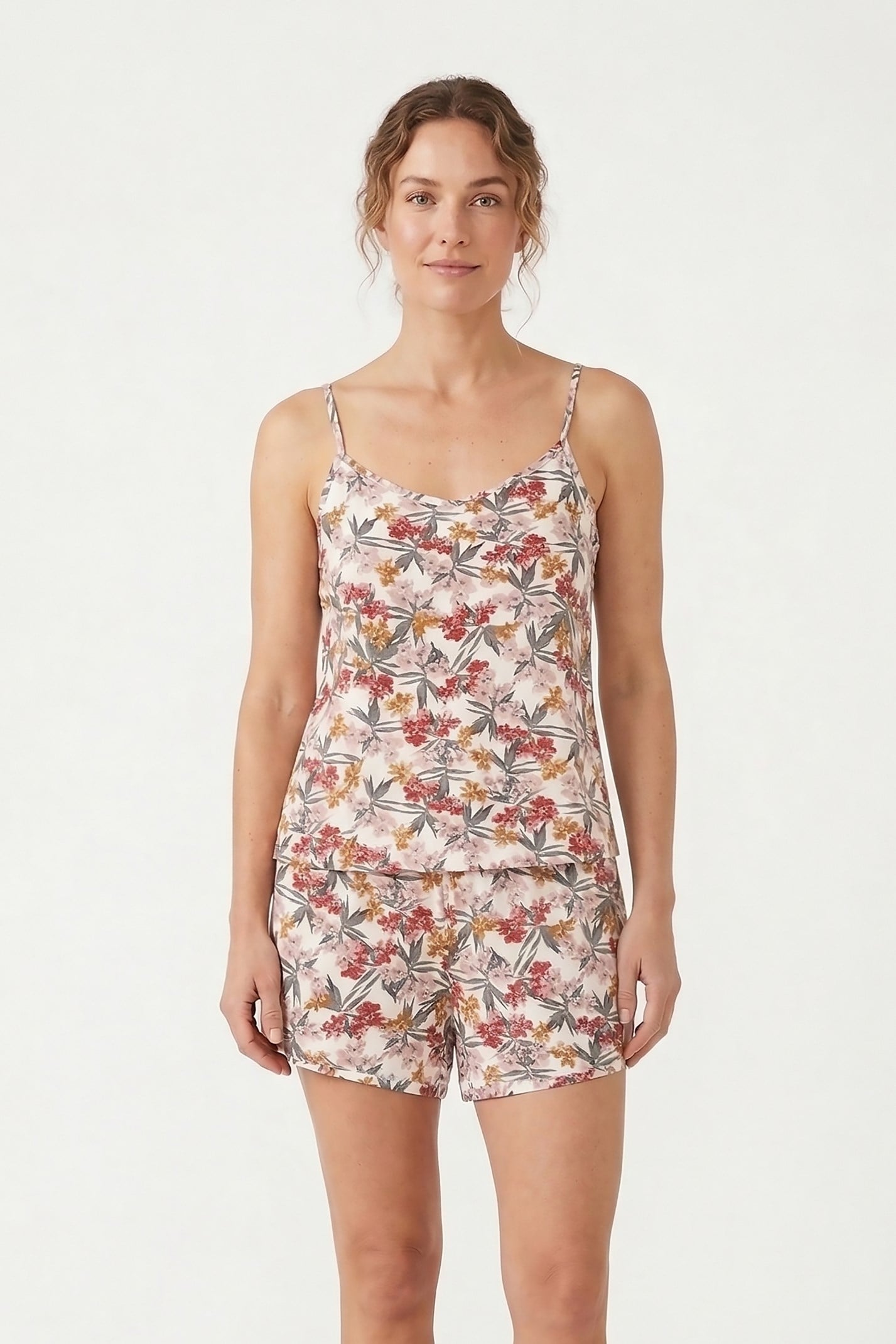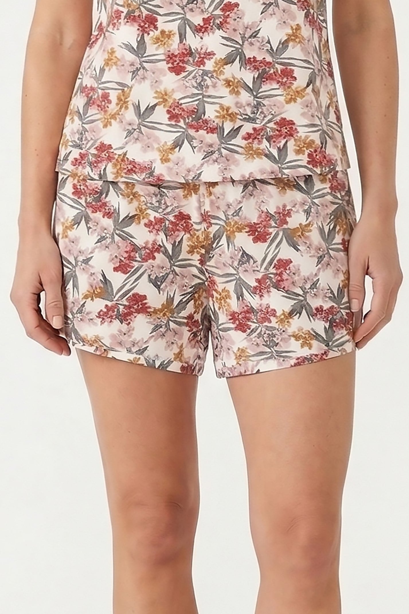 Kadın Ekru Çiçekli Viskon Şort (OBJE 15060_EKRU ÇİÇEKLİ)