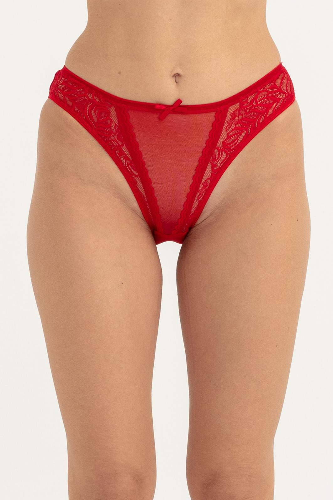 Kadın Kırmızı Ön Tül Yan Bant Arka Pamuk Bikini (OBJE DR 6518_KIRMIZI)