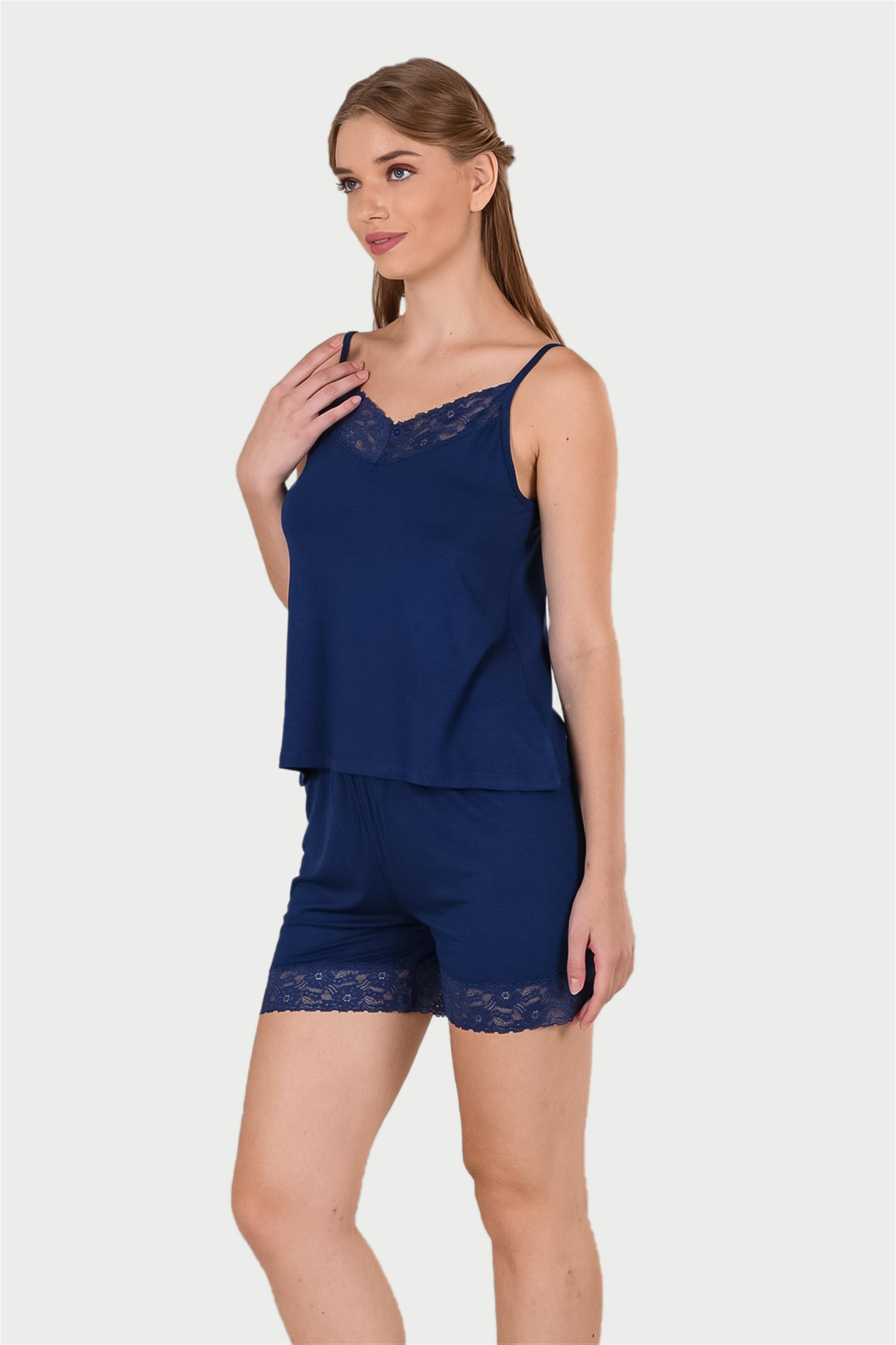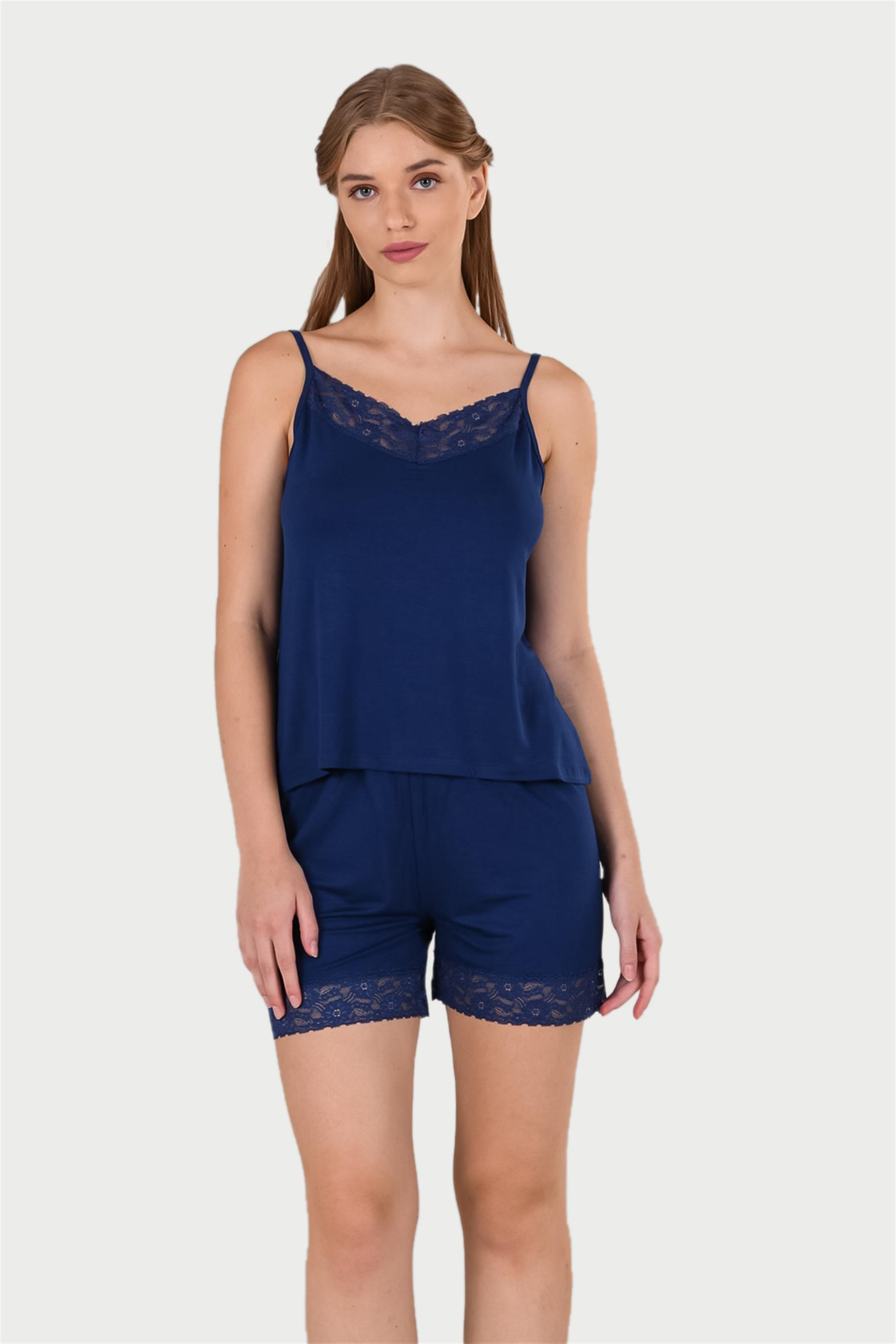 Kadın Lacivert Viskon Şort (OBJE 15060_LACİVERT)