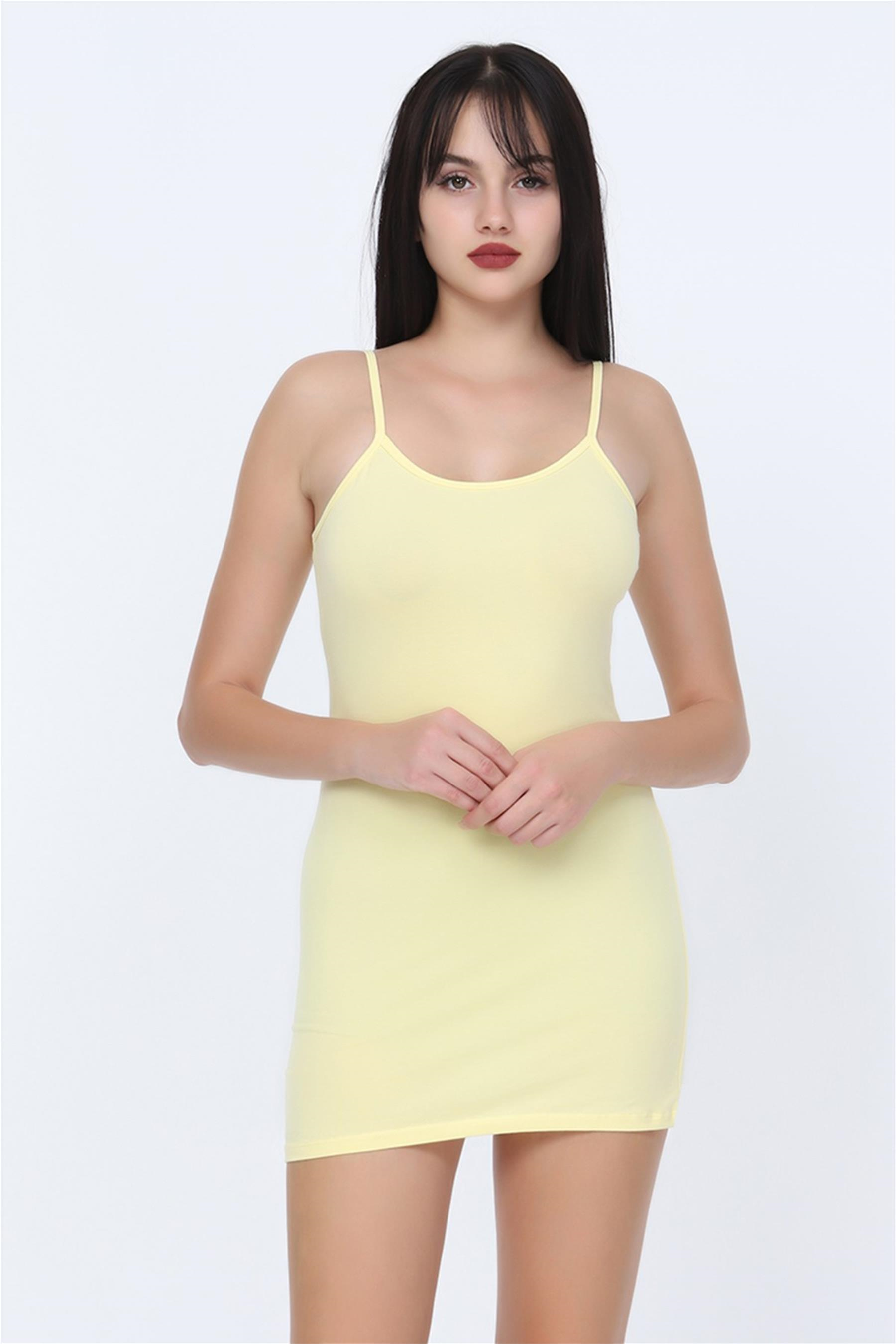 Kadın Limon Sarı İnce Askılı Uzun Atlet (OBJE 10473_LİMON SARI)