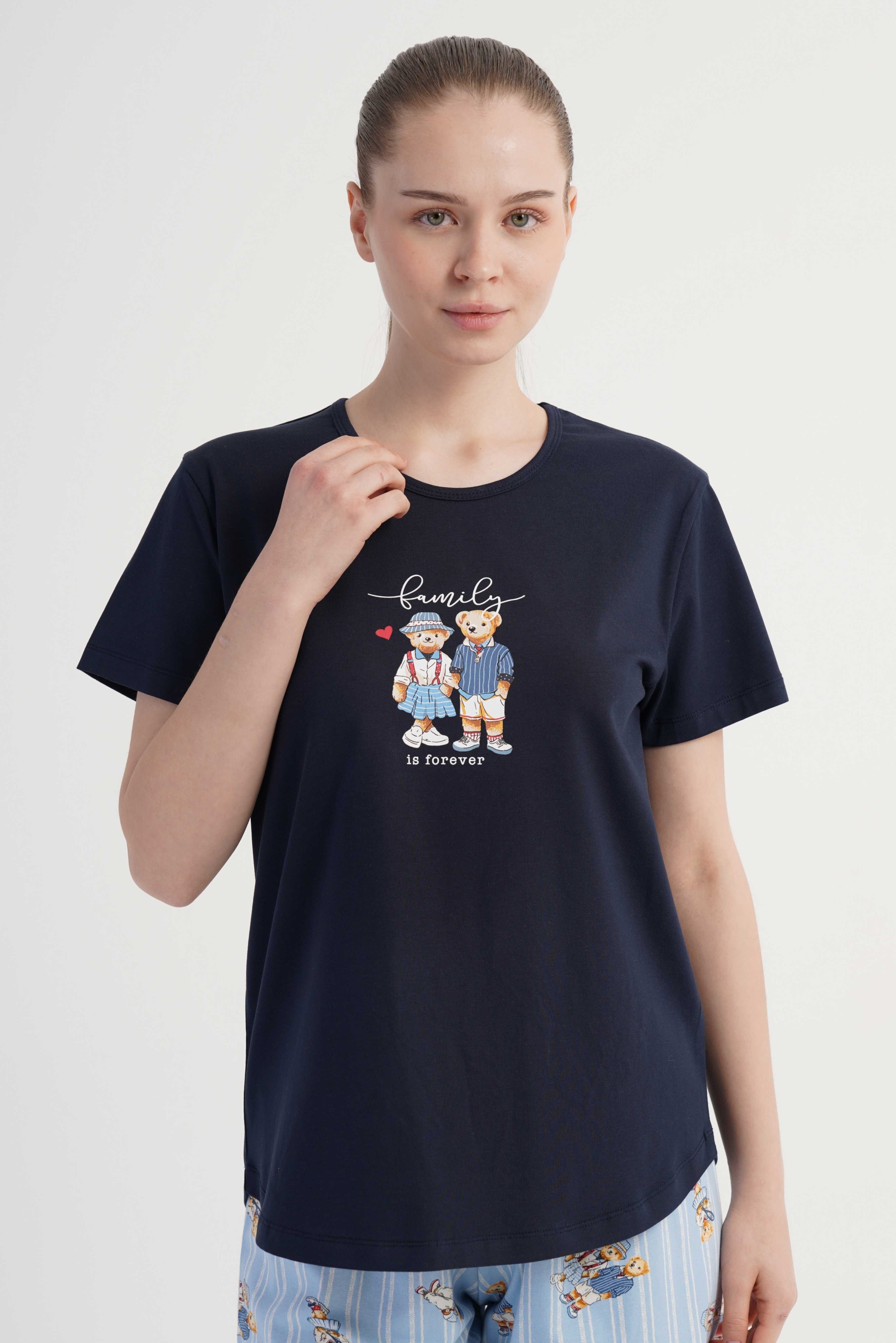 Kadın Lacivert Lyc Suprem Kısa Kol Pijama Üstü (OBJE 512146_LACİVERT)
