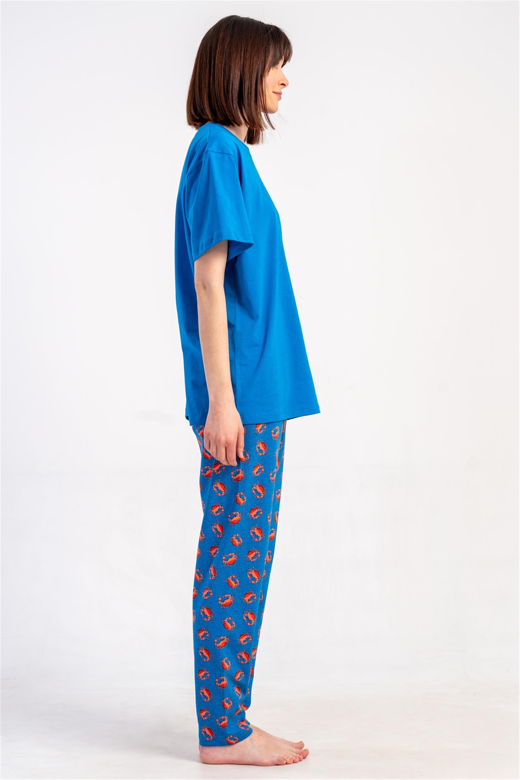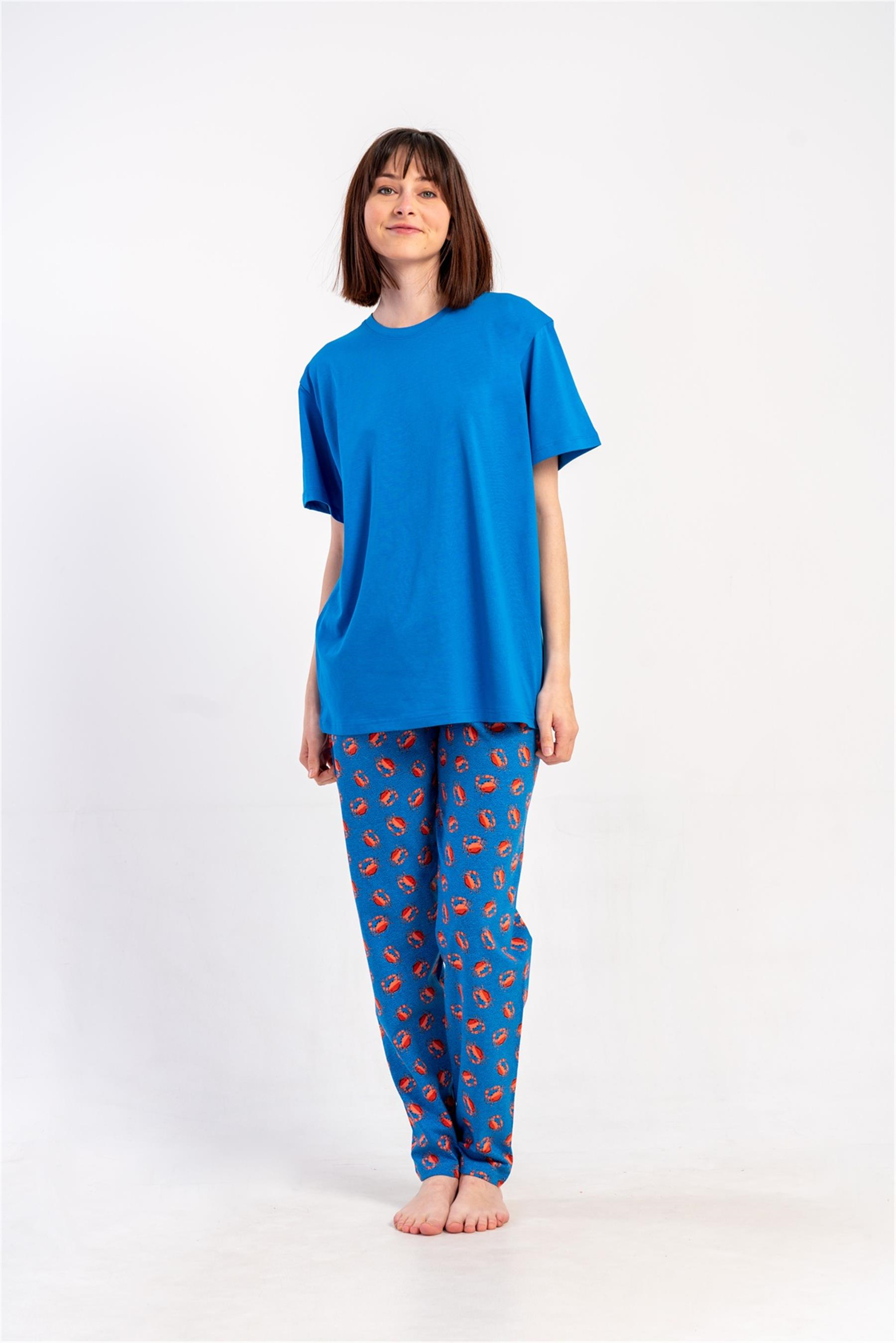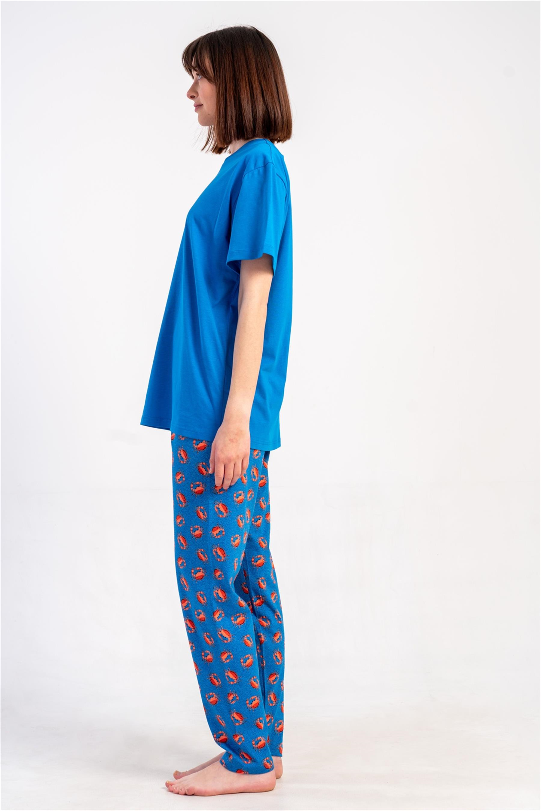Kadın Mavi Oversize Tişört (OBJE 502107_MAVİ)