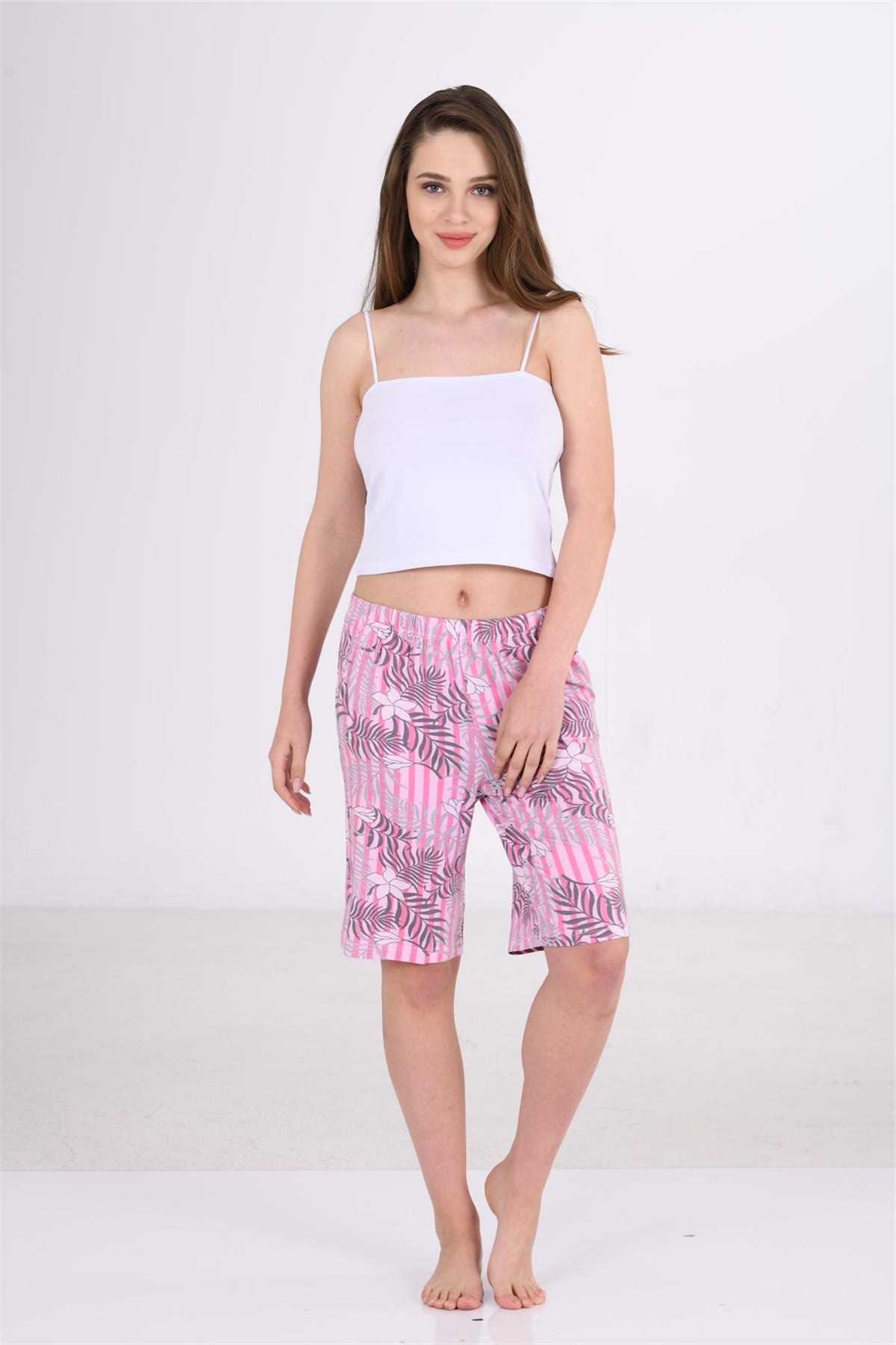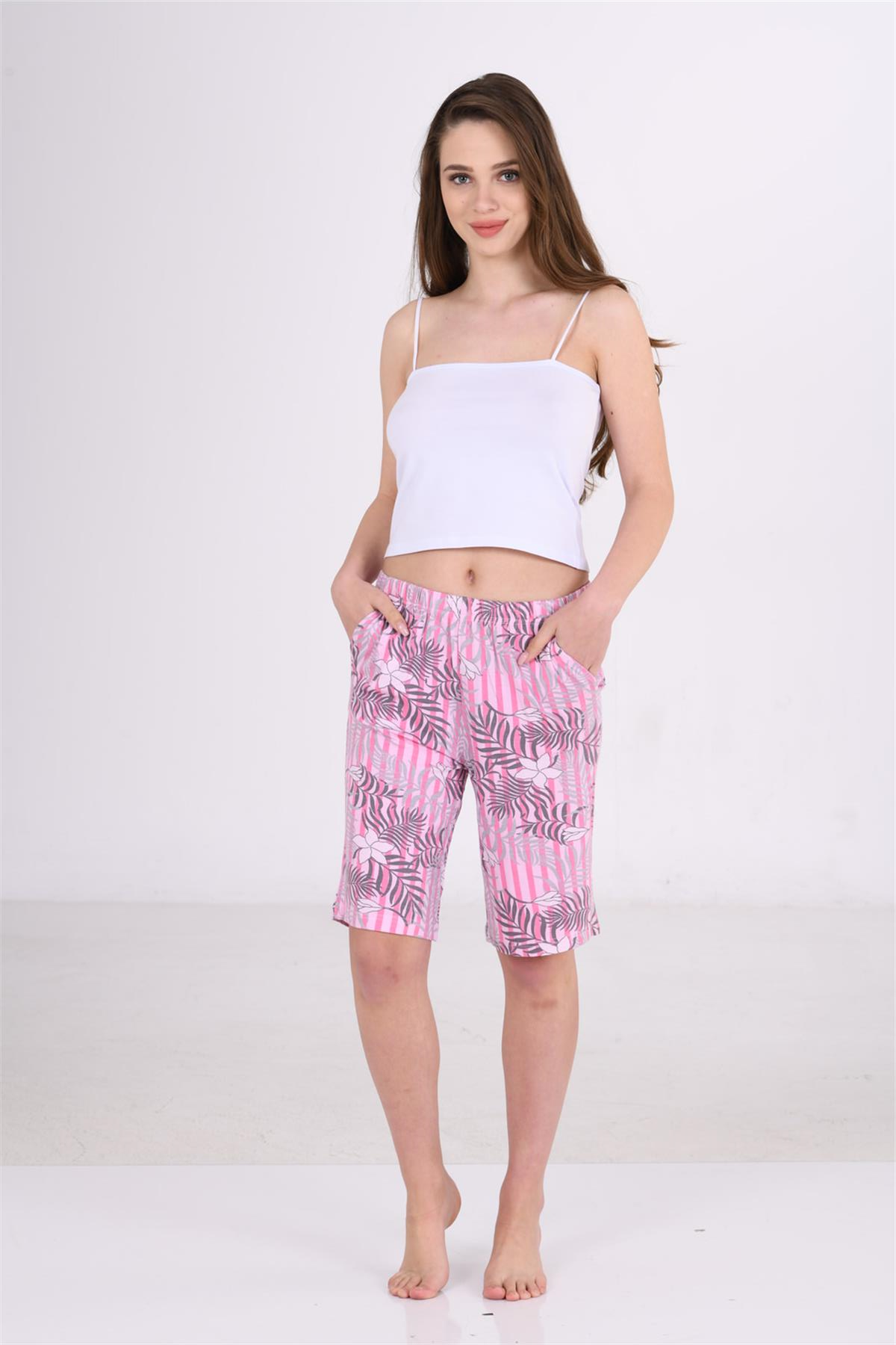 Kadın Pembe Gri Viskon Cepli Şort (OBJE 15078_PEMBE GRİ)