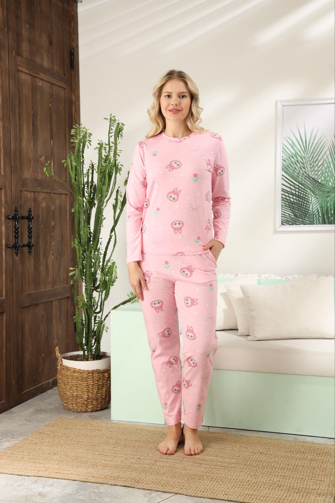 Kadın Pembe Labubu Desen Bisiklet Yaka Üst (OBJE 301005_LABUBU DESEN)