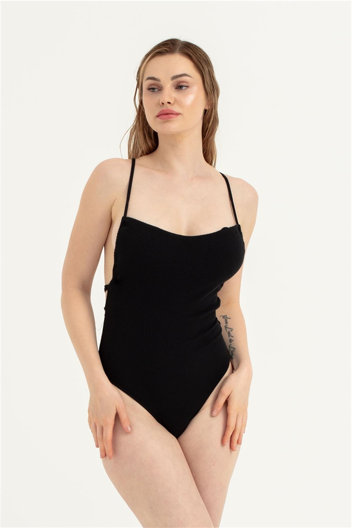 Kadın Siyah Derin Sırt Dekolteli Mayo (OBJE 1005 M_SİYAH)
