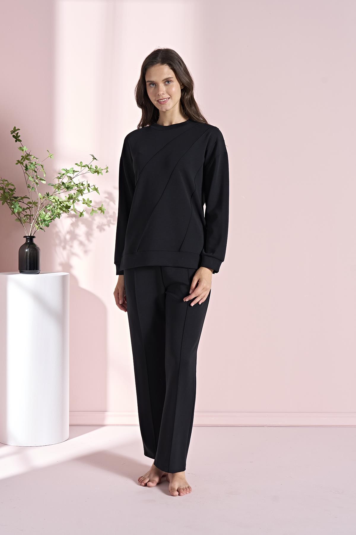 Kadın Siyah Scuba Eşofman Takımı (OBJE 5307_SİYAH)
